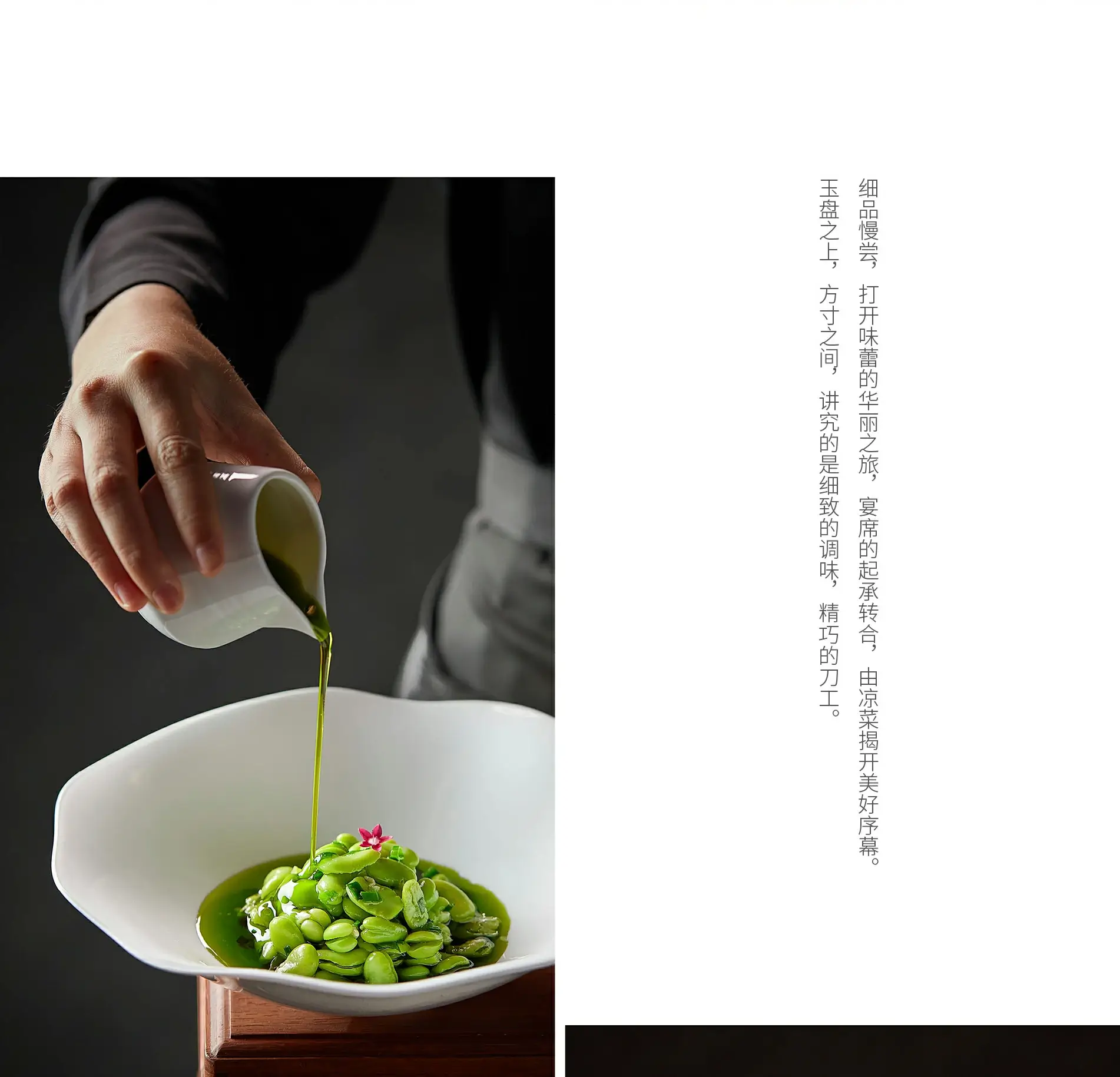 On the jade plate, within a tiny space, what matters is exquisite seasoning and meticulous knife skills.