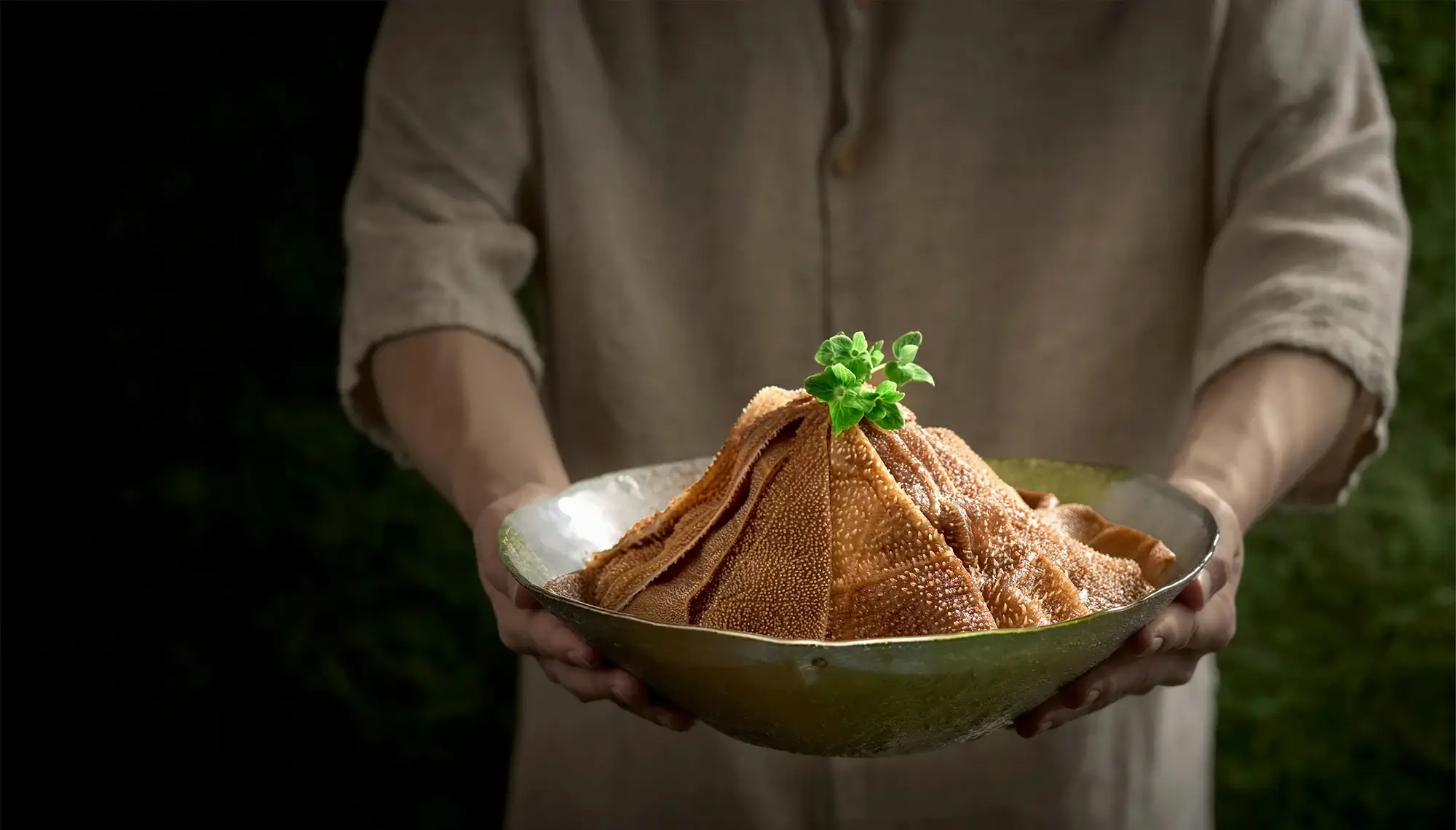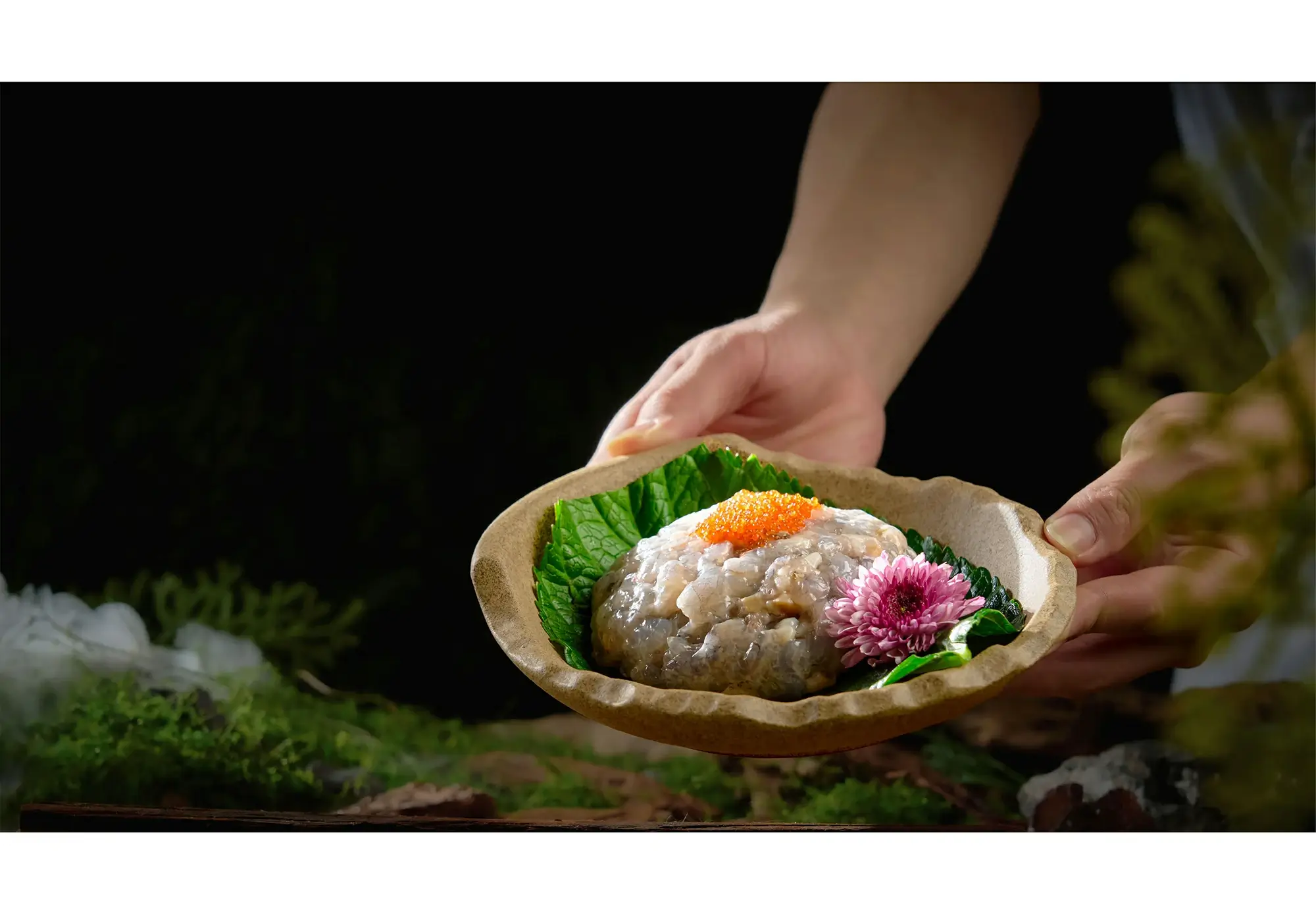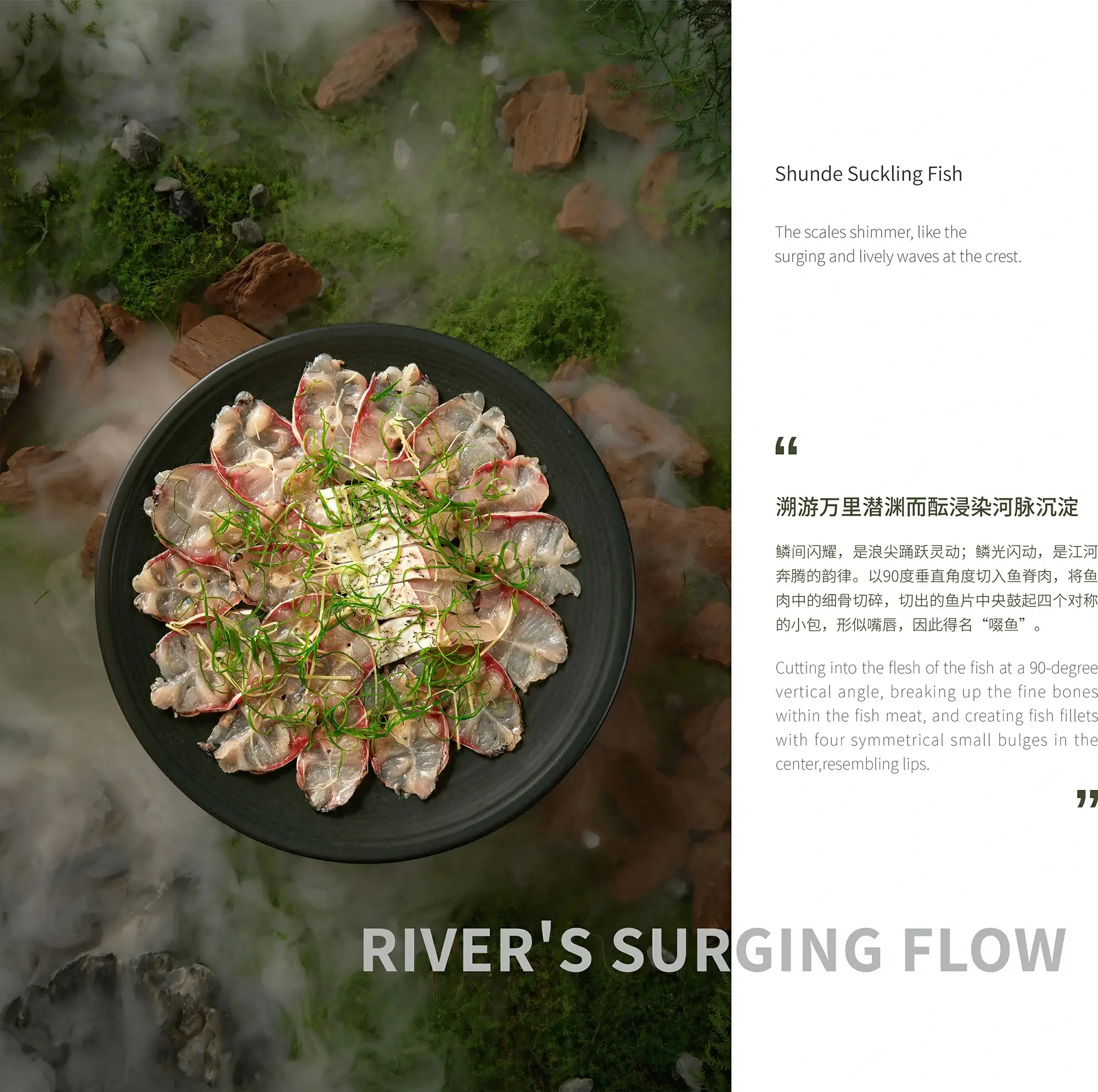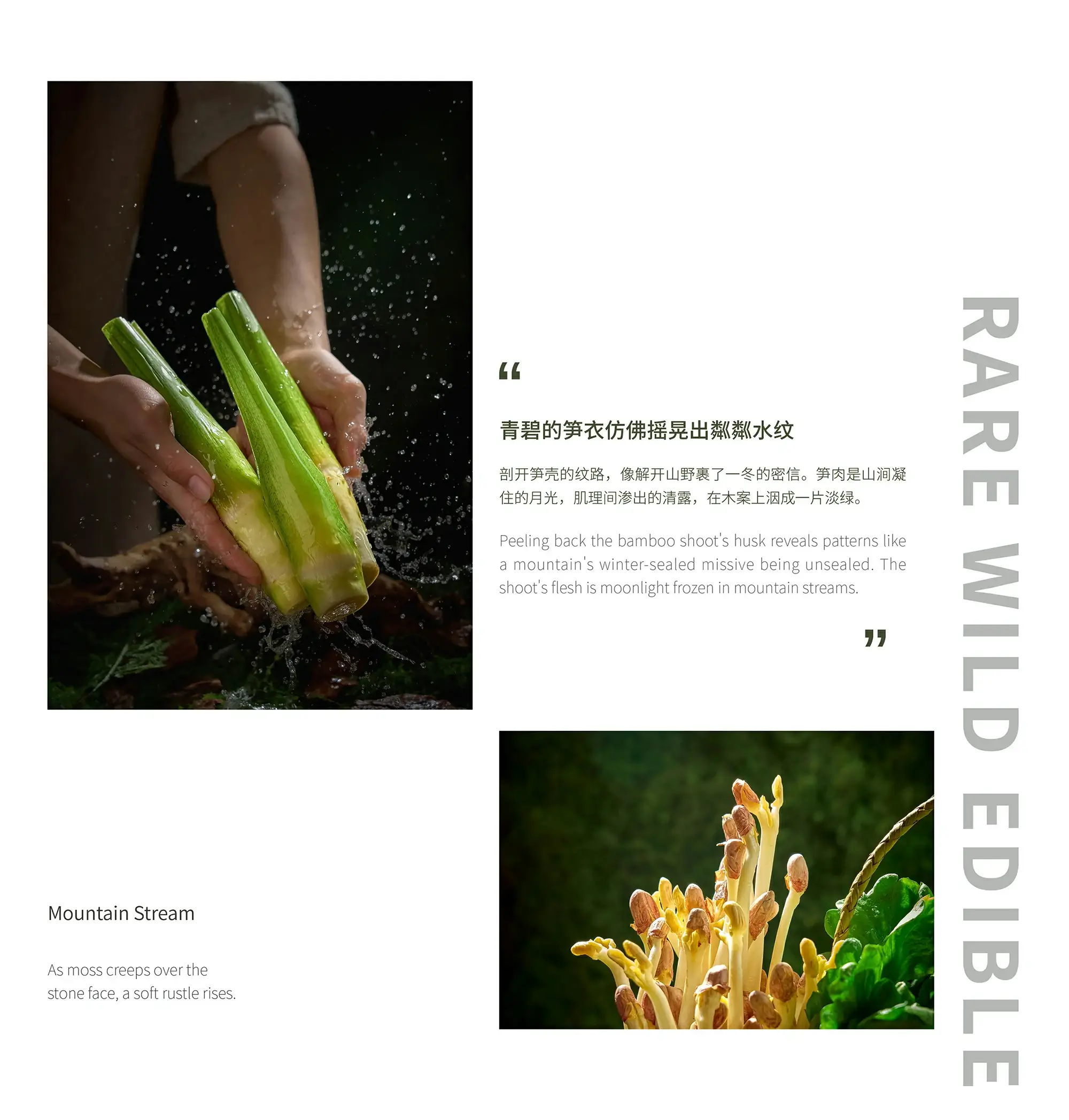 以 “山海共生” 为设计理念,将菜牌重构为一本《山海风物志》,以山野美学语言串联起食材本味与地域文化。