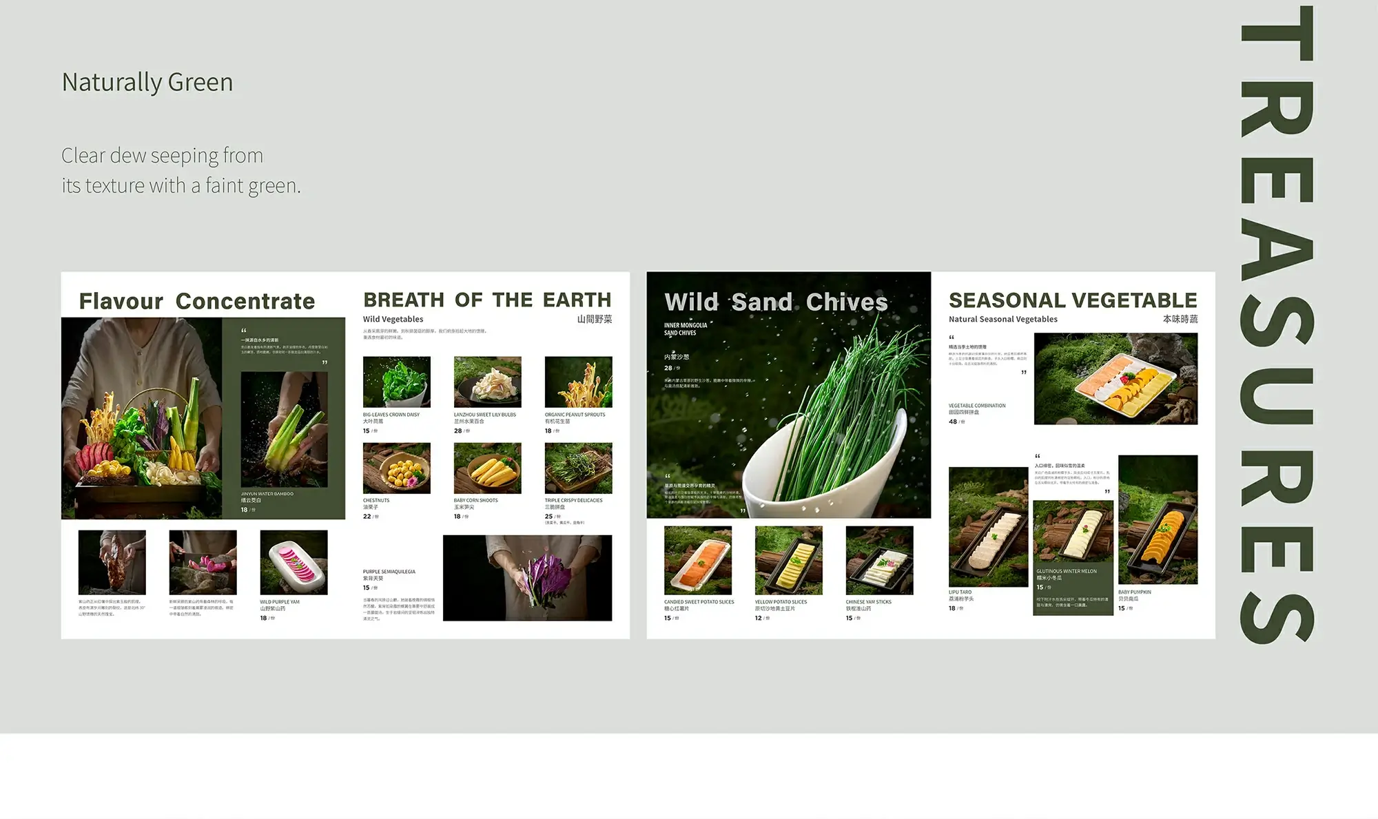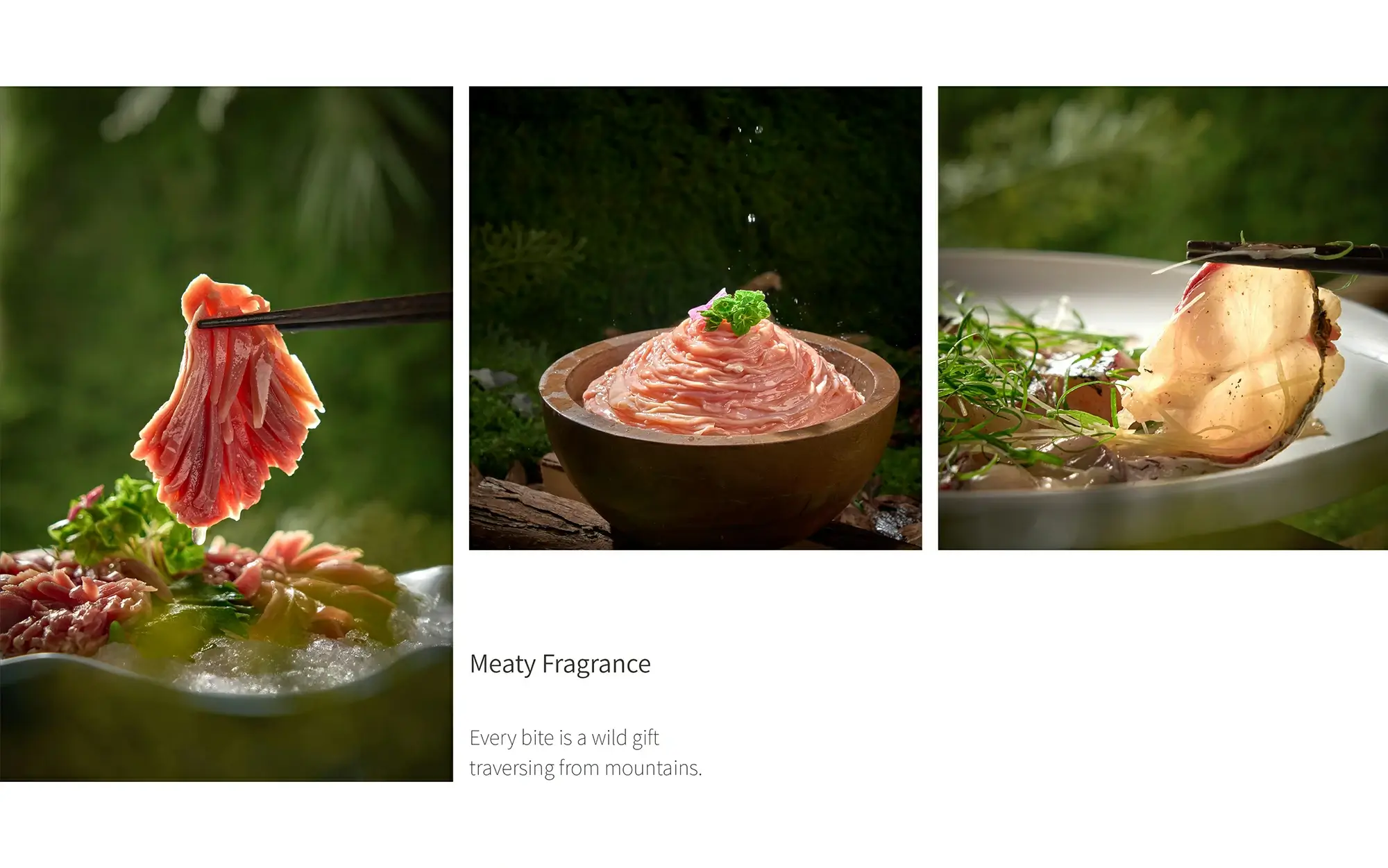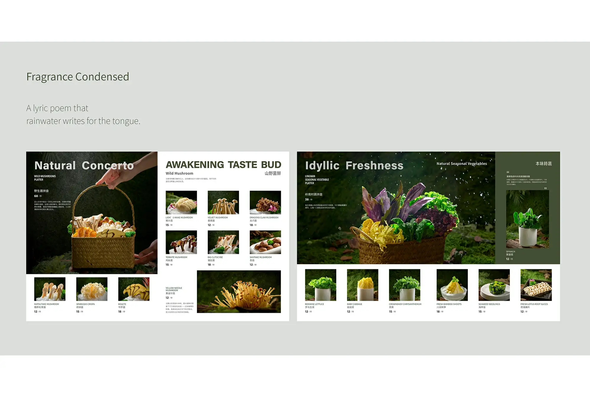 To boost sales for the brand, we centered our strategy on menu design, constructing a marketing system that blends visual aesthetics with consumer appeal. Embracing the "Harmony of Mountains and Seas" concept, we transformed the menu into a Chronicles of Natural Bounty — a storytelling menu that weaves wild aesthetics with authentic flavors and regional culture. This innovative approach successfully distinguished the brand from competitors. The culturally rich narrative propelled the brand to prominence on social media while driving a premium pricing strategy that increased average spending per customer.