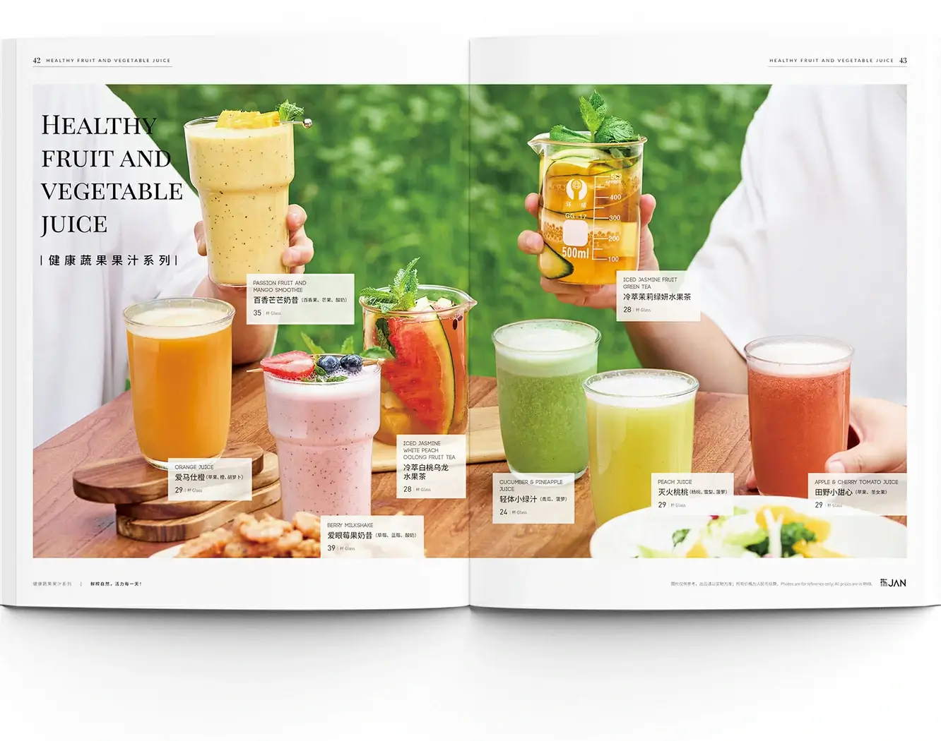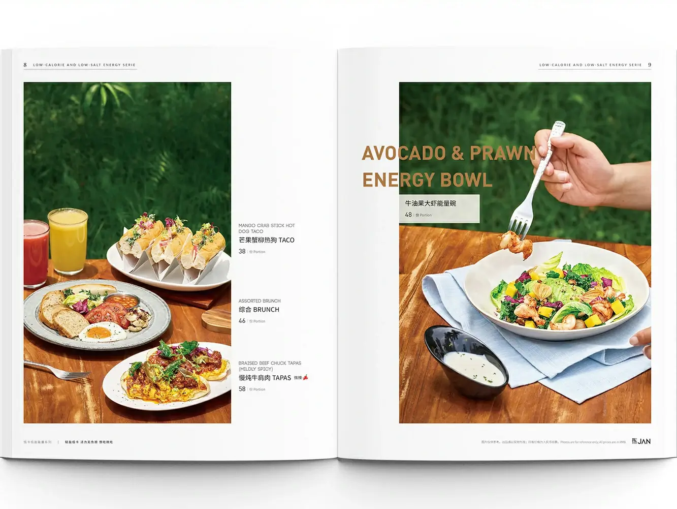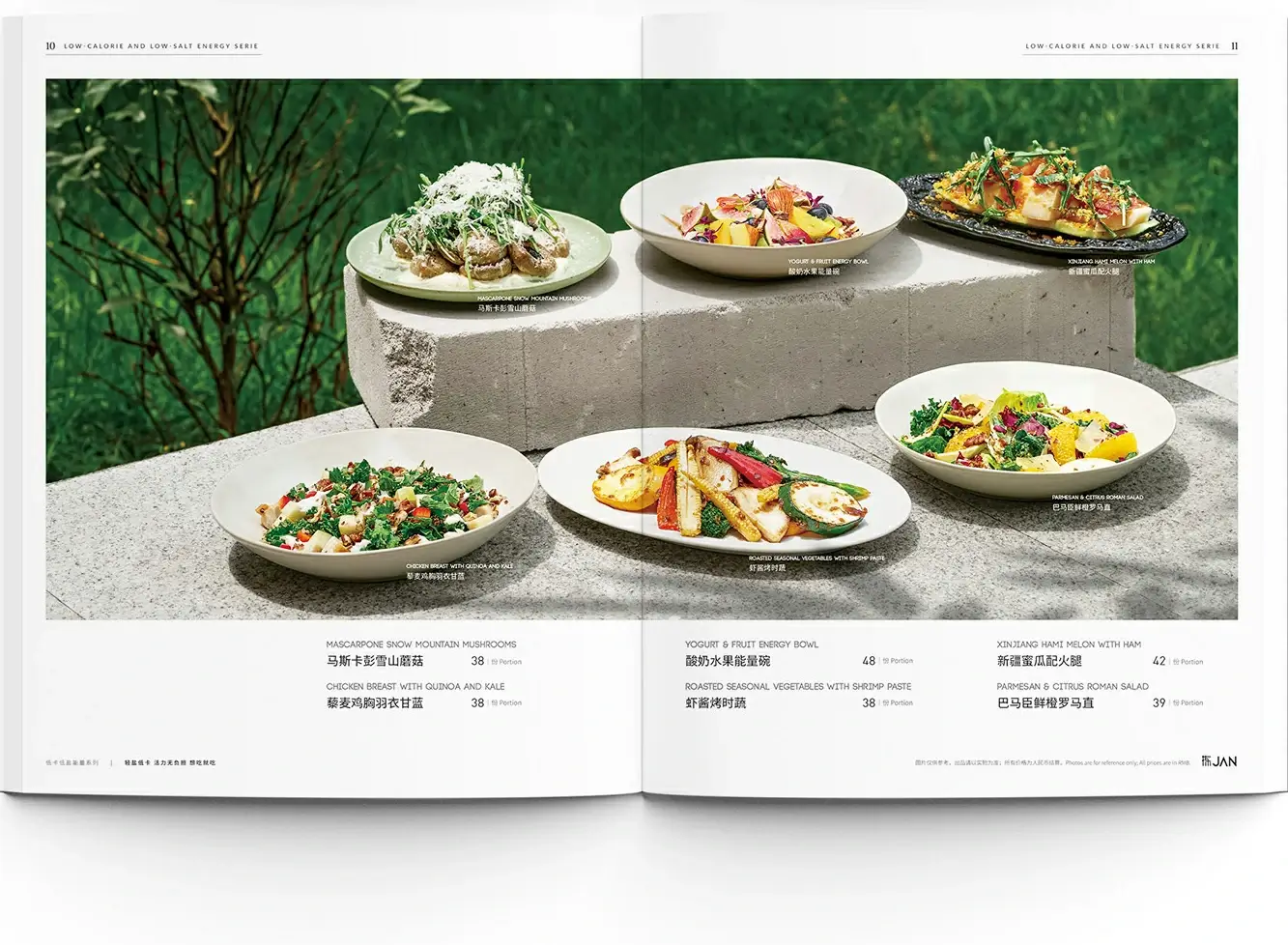 From the refreshing imagery of natural flora to the raw texture of vibrant fruits and vegetables, and further to the artfully presented light meals, the menu design for "Jian" Western Restaurant seamlessly integrates natural aesthetics with a philosophy of wellness. Through high-definition visuals that capture low-calorie, low-sodium energy cuisine, and from ingredient selection to plating design, it conveys a delightful atmosphere where nature and flavor intertwine, allowing one to fully savor an experience of healthy and refined dining.